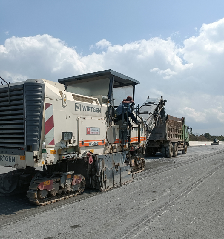 路面銑刨 :通俗說就是把損壞的舊路面刮一層,再鋪新面層。一般為的是消除舊路面破壞松散部分,或為了新舊面的結合良好。還有,為了提高路